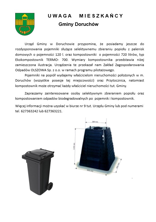 Uwaga Mieszkańcy rozdajemy pojemniki na popiół i kompostowniki